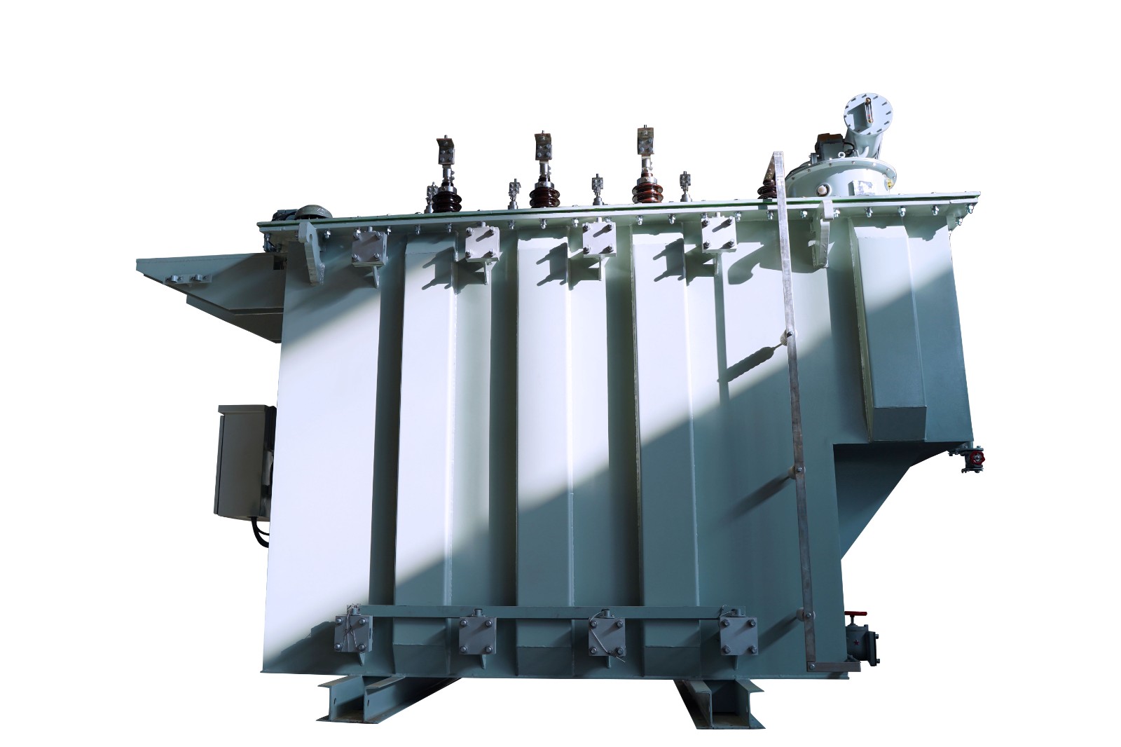 可在一次側借助于有載調壓開關在調壓范圍內調整電壓,以保證輸出電壓的穩定性,35KV級6300kVA以上變壓器采用折板油箱,大大加強了油箱機械強度,減少焊縫,提高了外觀質量。